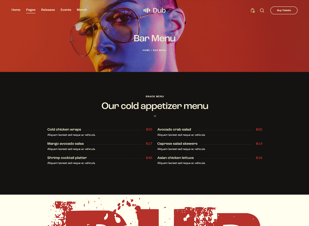 - Bar & restaurant section: Showcase menus, booking options, visuals of the vibe and the interior.